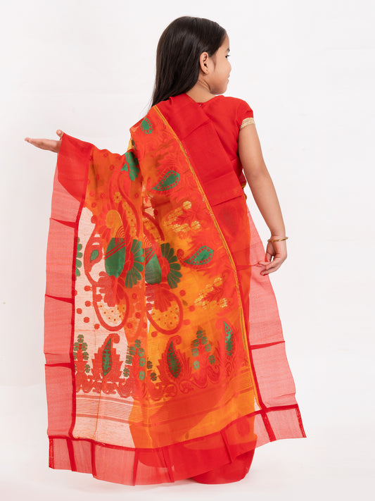 Exclusive Premium Quality Kids Dhakai Jamdani Saree – Yellow & Red
