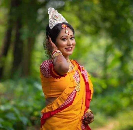 गाइहलुद स्पैशियल गमछा हाथ से काम करने वाली साड़ी रेडी फ्री साइज़ ब्लाउज के साथ (पीला)